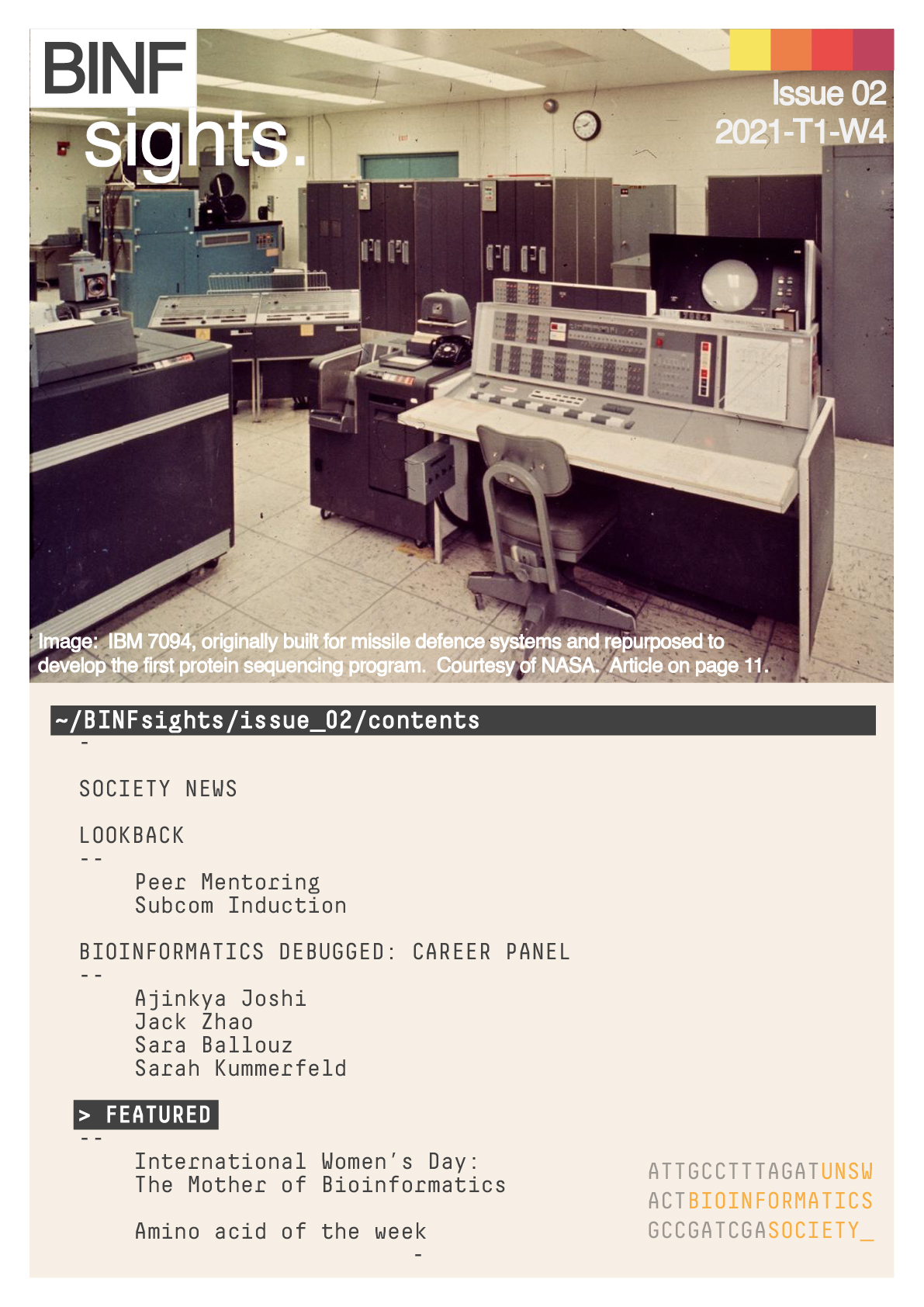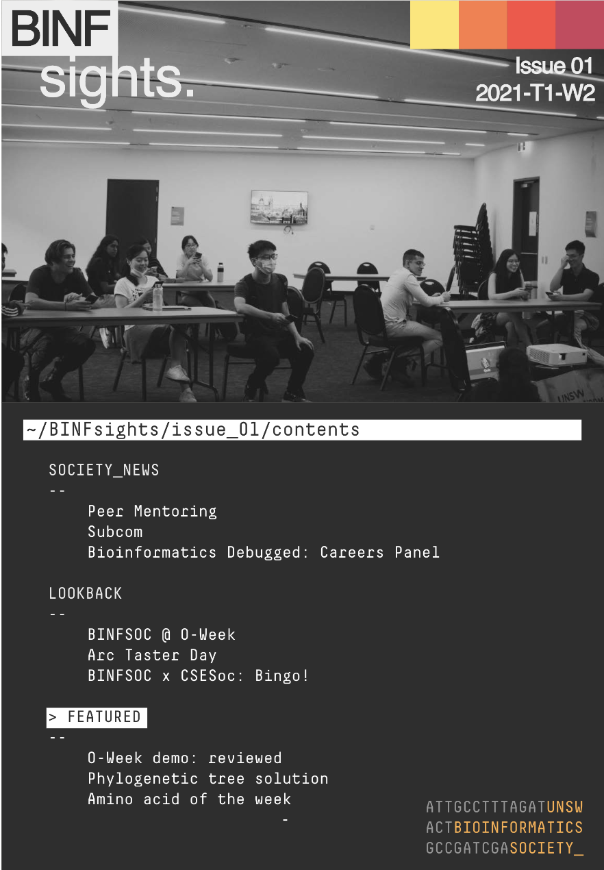 BINFsights is UNSW Bioinformatics Society’s newsletter, jam packed with society news, upcoming events, and the latest industry news in bioinformatics written by our members. Latest Issue Previous Issues 2025 2024 2023 2022 2021